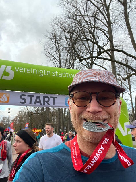 I ran parts of the race with a guy called Michael, who was also running in the Hoka Mafate X, which got us talking about shoes, carbon plates, running over 50 and so on. Then at the halfway point, Christoph, a friend from school, closed up to me and we ran together for a while. Anyhow, I ran 10 minutes slower than last year and fell apart around kilometer 20 when I had to climb one last hill. Even though I just had to run more or less downhill and on a long flat stretch, the last 5km took a lot longer than I wanted. But I had a great time nonetheless and the hot noodle soup after the finish made most of the pain go away. Next year I’ll train and run more before the race, hopefully. When I was at home I took a long nice hot bath, so long that my wife sent one of my daughters to see if I’m still ok. I really didn’t want to leave the hot water.