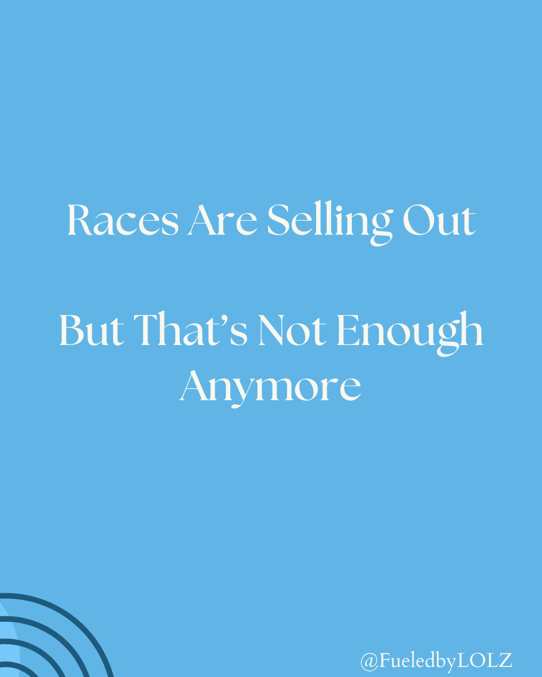 Itâs great that runs are sold out, I guess we need to create more to meet demand! If you travel to a race, you might as well attend an event and have more fun while away from home.